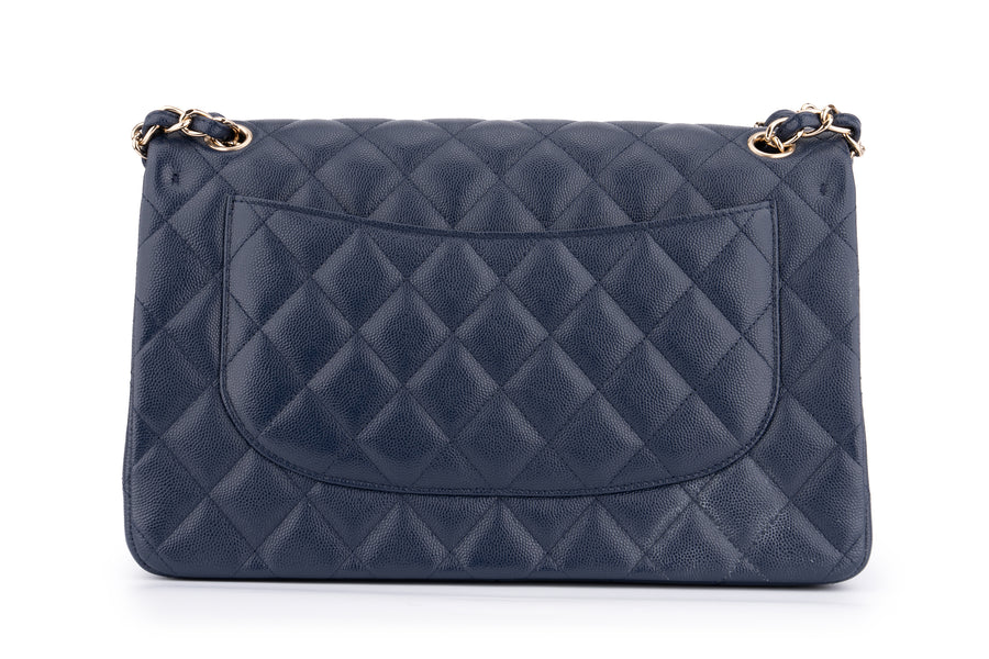 Chanel Jumbo Flap Bag Caviar Navy Blue GHW Pre-loved In Good Condition Full Set With Authenticity Card. No Receipt