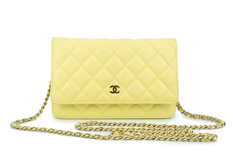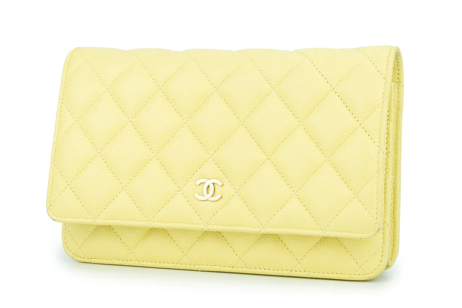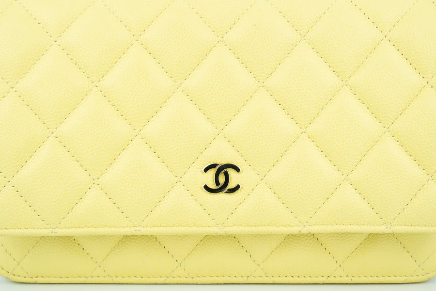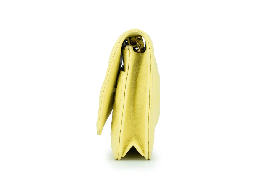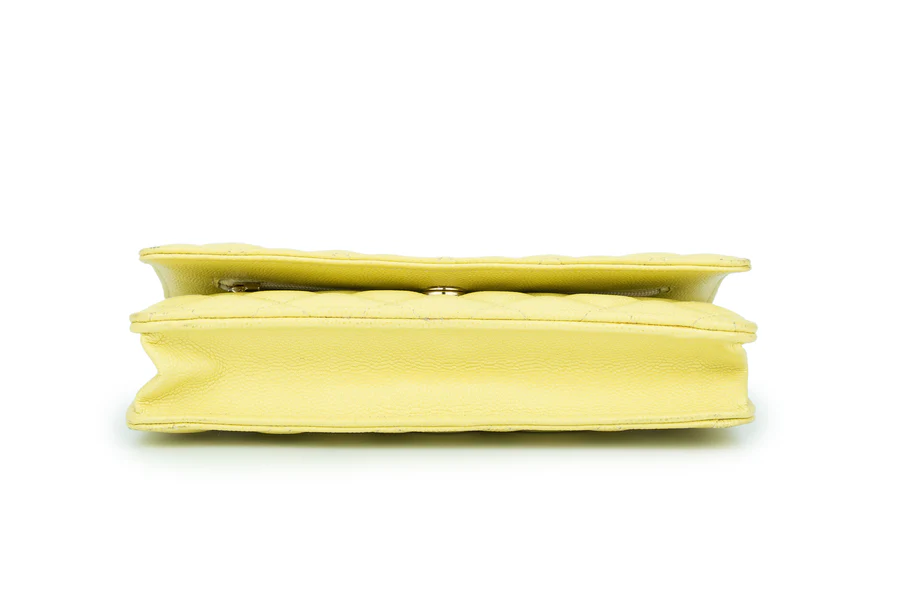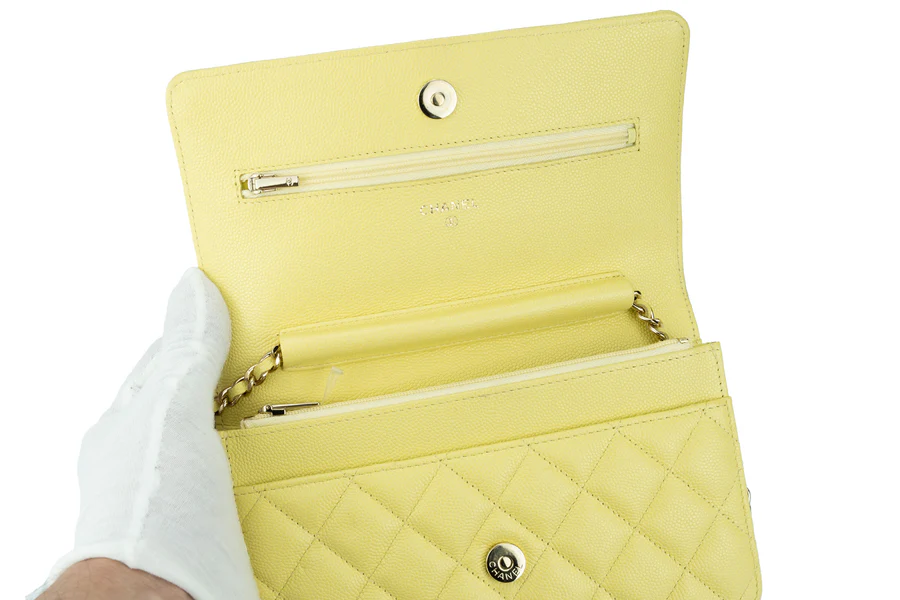 Chanel WOC Caviar Pale Yellow Champagne GHW 2020, Pre-loved Full Set Except Receipt.