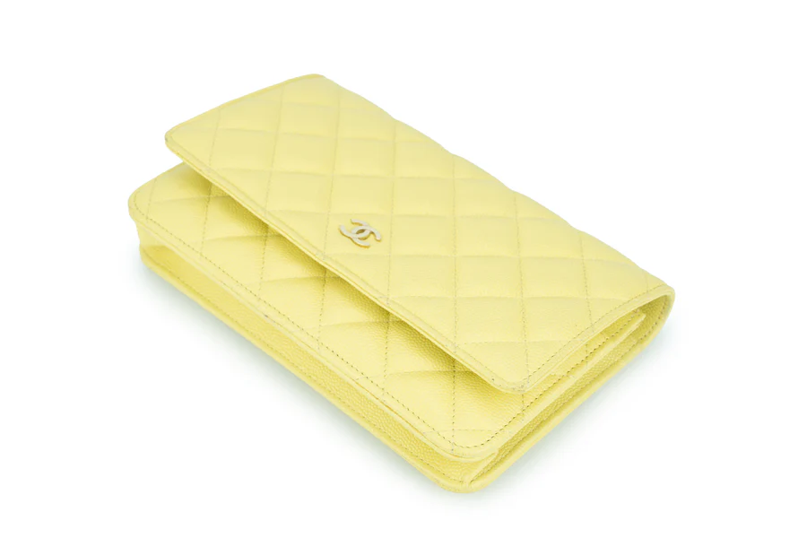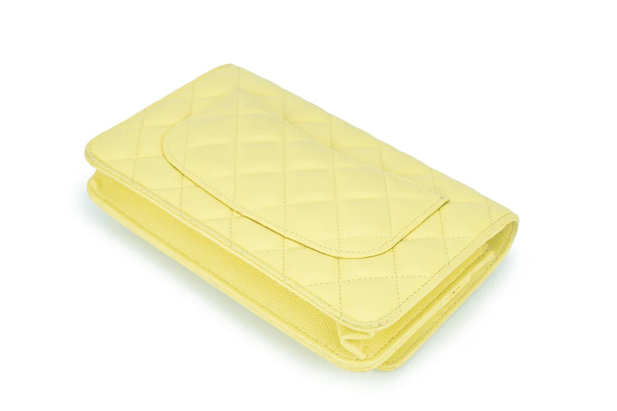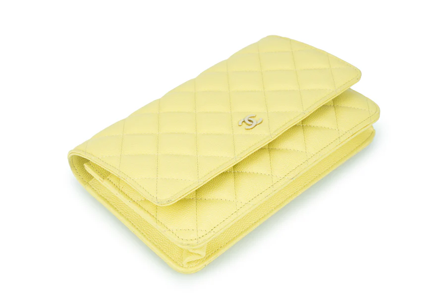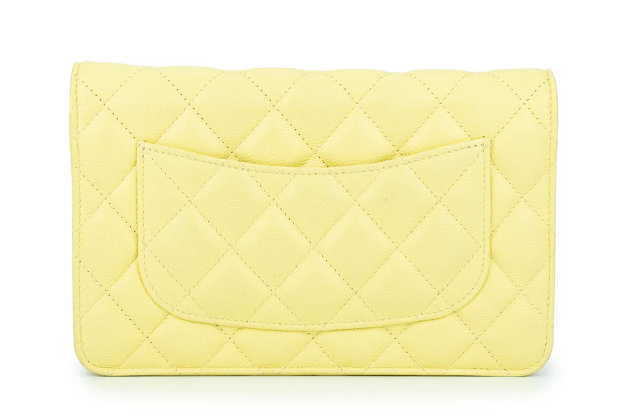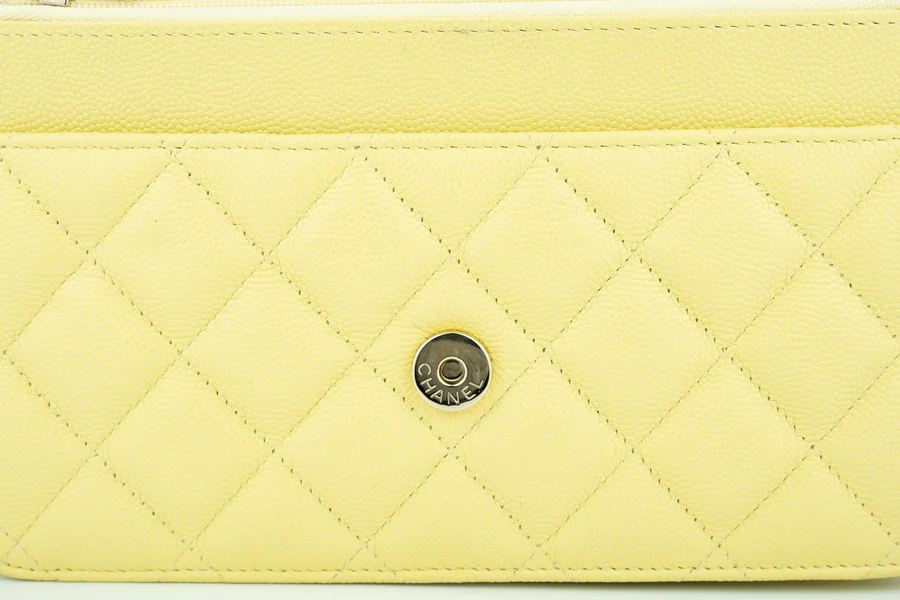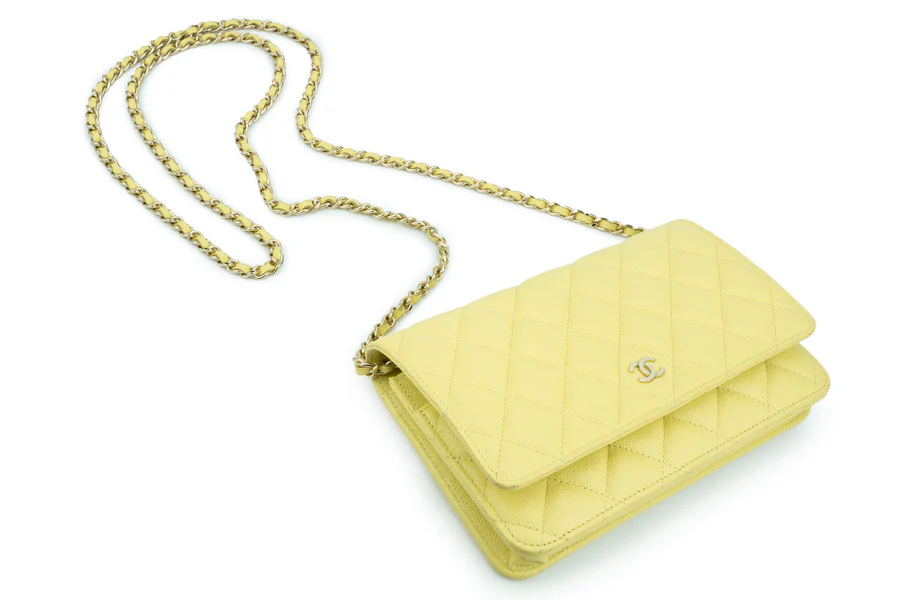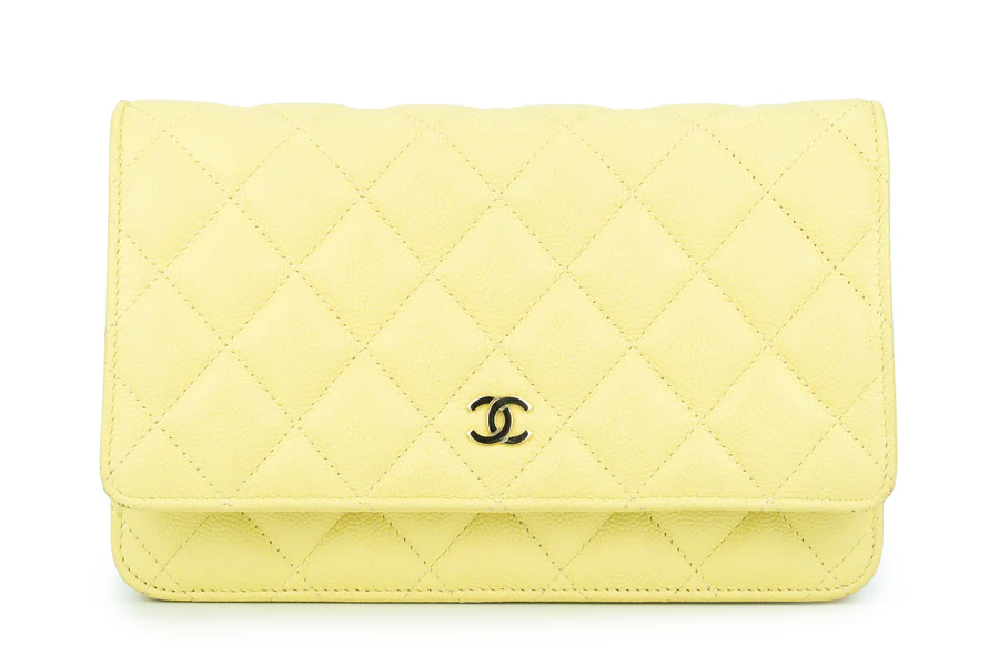 Chanel WOC Caviar Pale Yellow Champagne GHW 2020, Pre-loved Full Set Except Receipt.