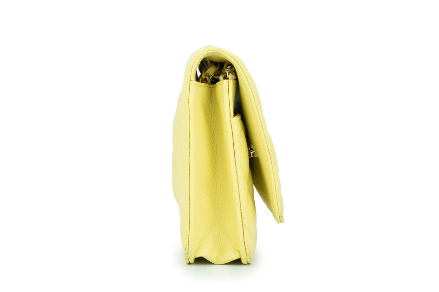 This Chanel Wallet on chain caviar bag has a pale yellow colour with champagne gold hardware, this pre-loved bag is the 2020 edition which comes with a full set except for the receipt. Despite WOC’s small size, it features multiple compartments which makes it easier to organize more stuff. The Chanel Wallet on chain can be used as a wallet and also a small cross-body bag, which makes it a perfect everyday bag. It shows some signs of use as It has scratches on the corners and colour discolouration at the back.