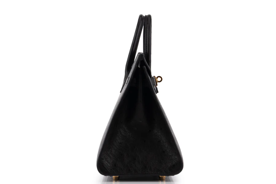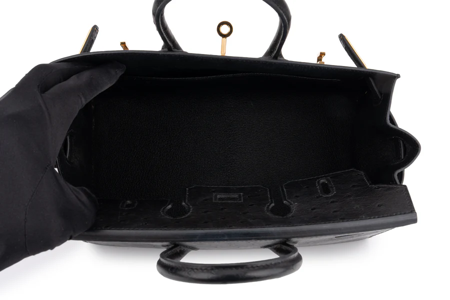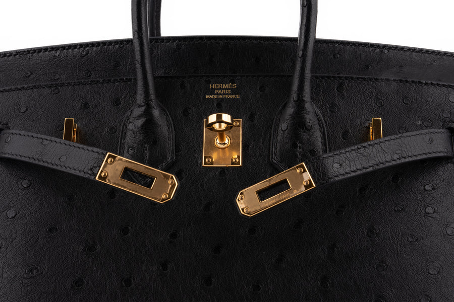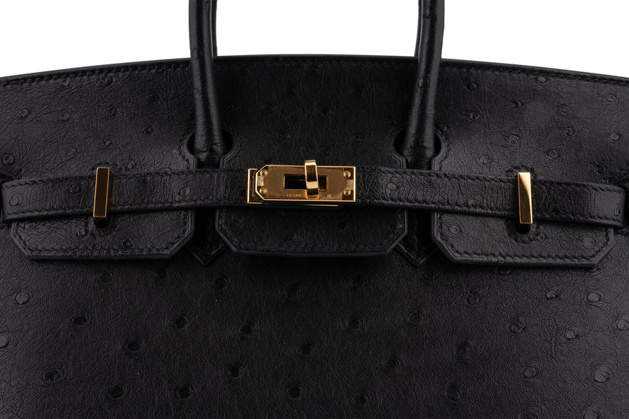 Hermès Birkin 25 Ostrich Noir GHW B Stamp 2023 Pre-loved In Good Condition Comes Full Set With Receipt No Cites