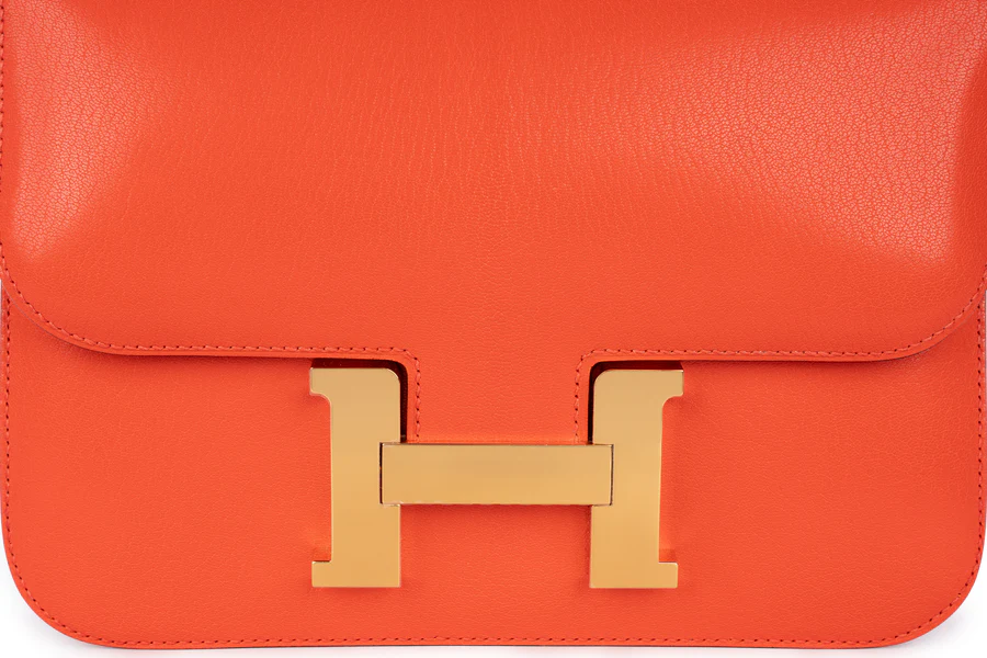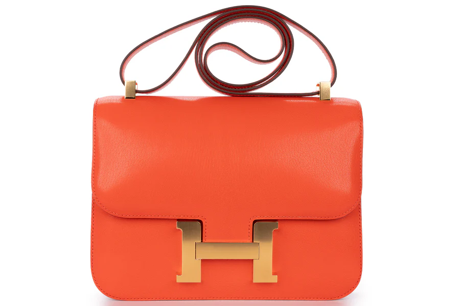 This Hermès Constance 24 comes in a capucine colour, a choice of pop culture enthusiasts. The 24cm size of this bag is considered the best because of its practicality, which makes it a daily wear. This bag was manufactured in 2022 and is available at Love-luxury in box fresh condition. This bag comes with a complete set, including all accessories. The gold hardware and iconic clasp add luxury to this bag and create secure access for its compartments.