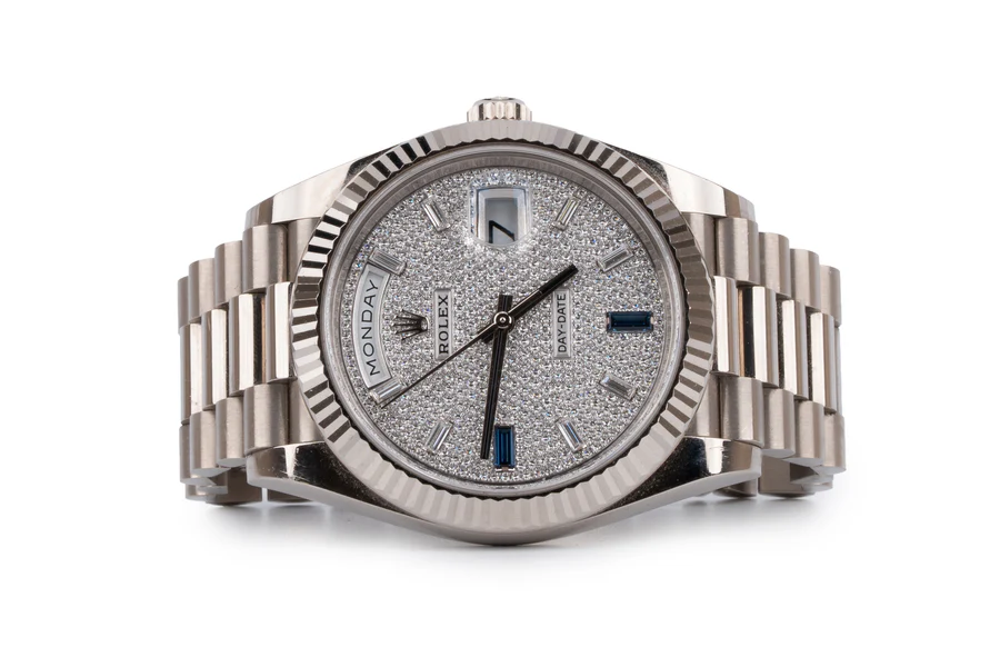 Rolex Day Date White Gold Diamond Paved Sapphire Dial Pre-loved 2024 40mm